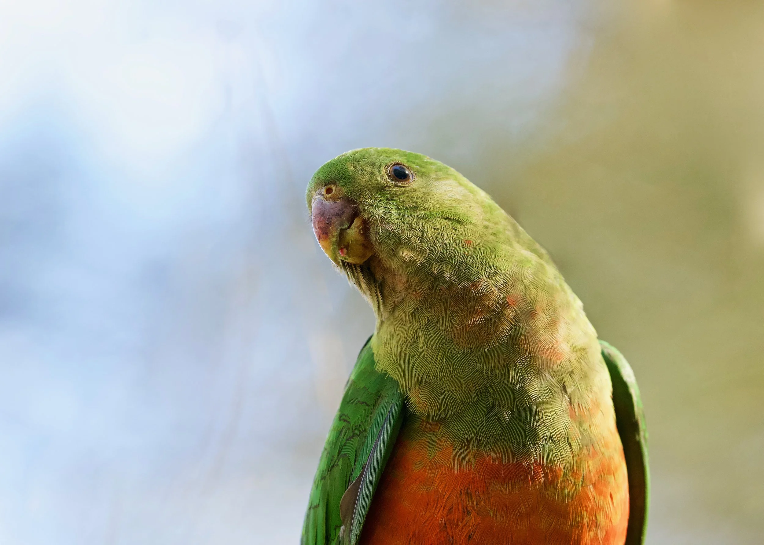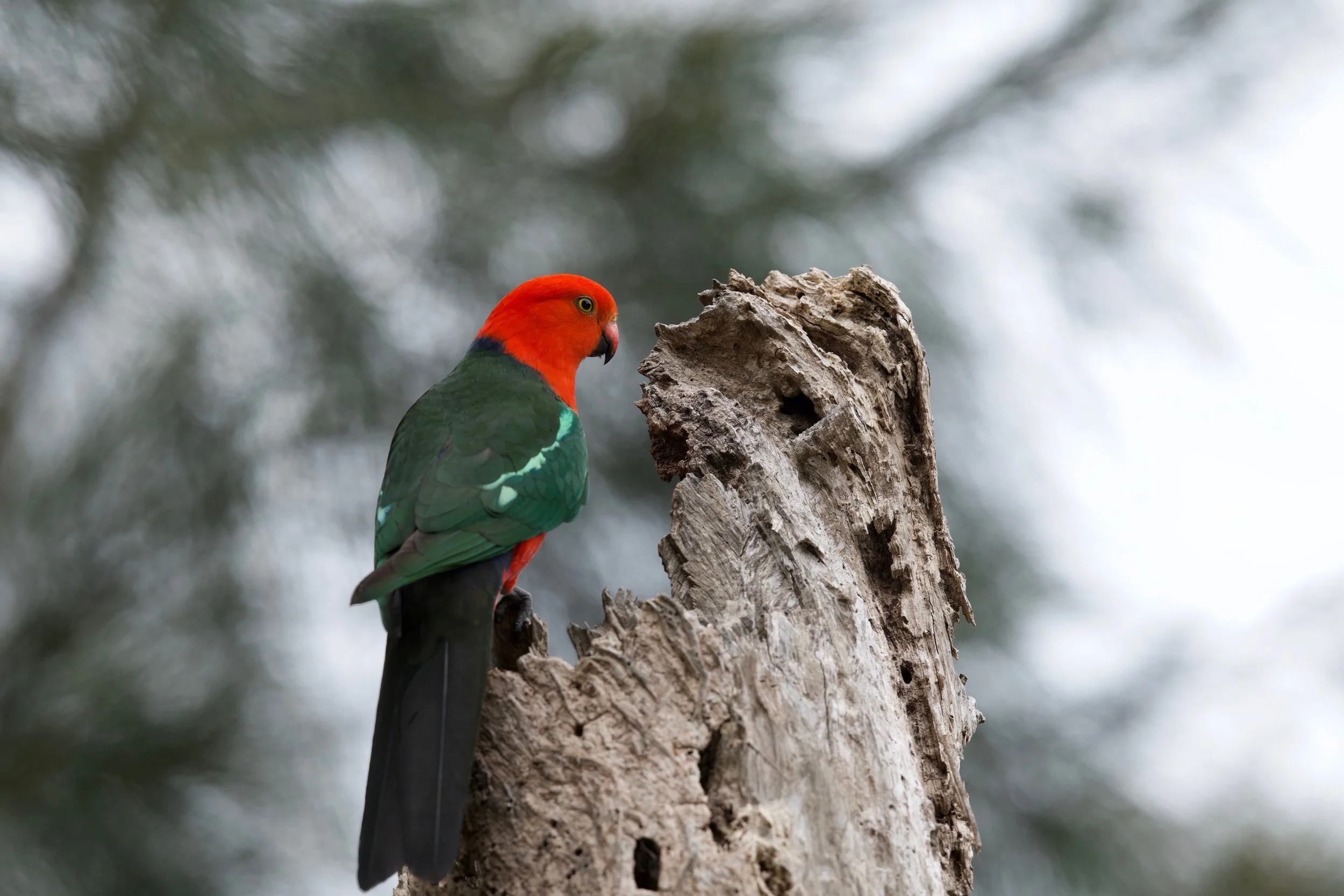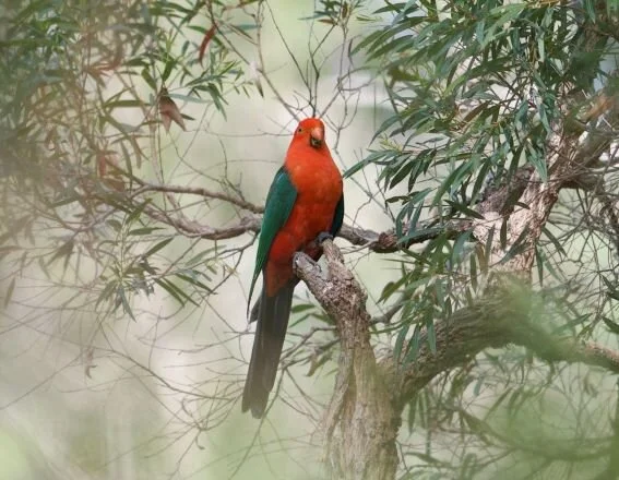 King Parrots are mainly found in the gum trees looking for nesting hollows. They can also be in bushes when feeding.