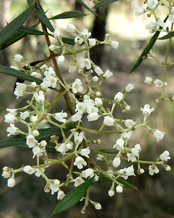 The numerous tiny white flowers grow in the leaf axils in small racemes. They are very sweet scented, especially in moist conditions.